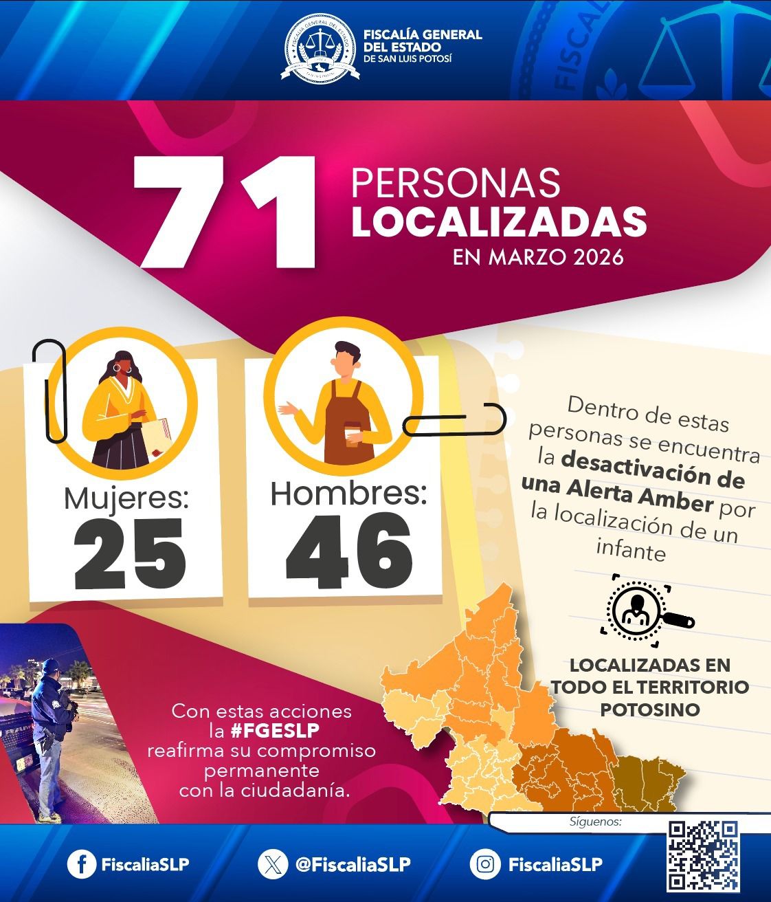 71 PERSONAS LOCALIZADAS EN MARZO: RESULTADOS DE LAS ACCIONES COORDINADAS POR LA FGESLP