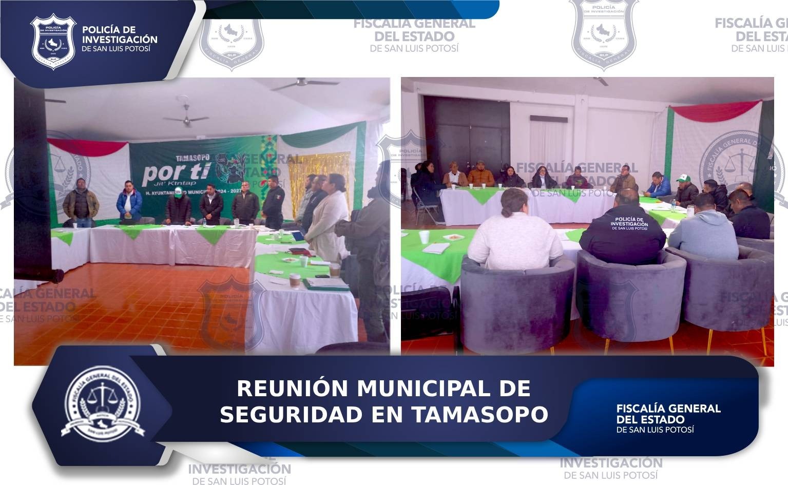 La Fiscalía General del Estado de San Luis Potosí (FGESLP), a través de personal de la Dirección General de Métodos de Investigación (DGMI), participó en la décima reunión del Consejo de Seguridad Pública Municipal de Tamasopo, con el objetivo de fortalecer la coordinación interinstitucional en materia de seguridad y justicia.