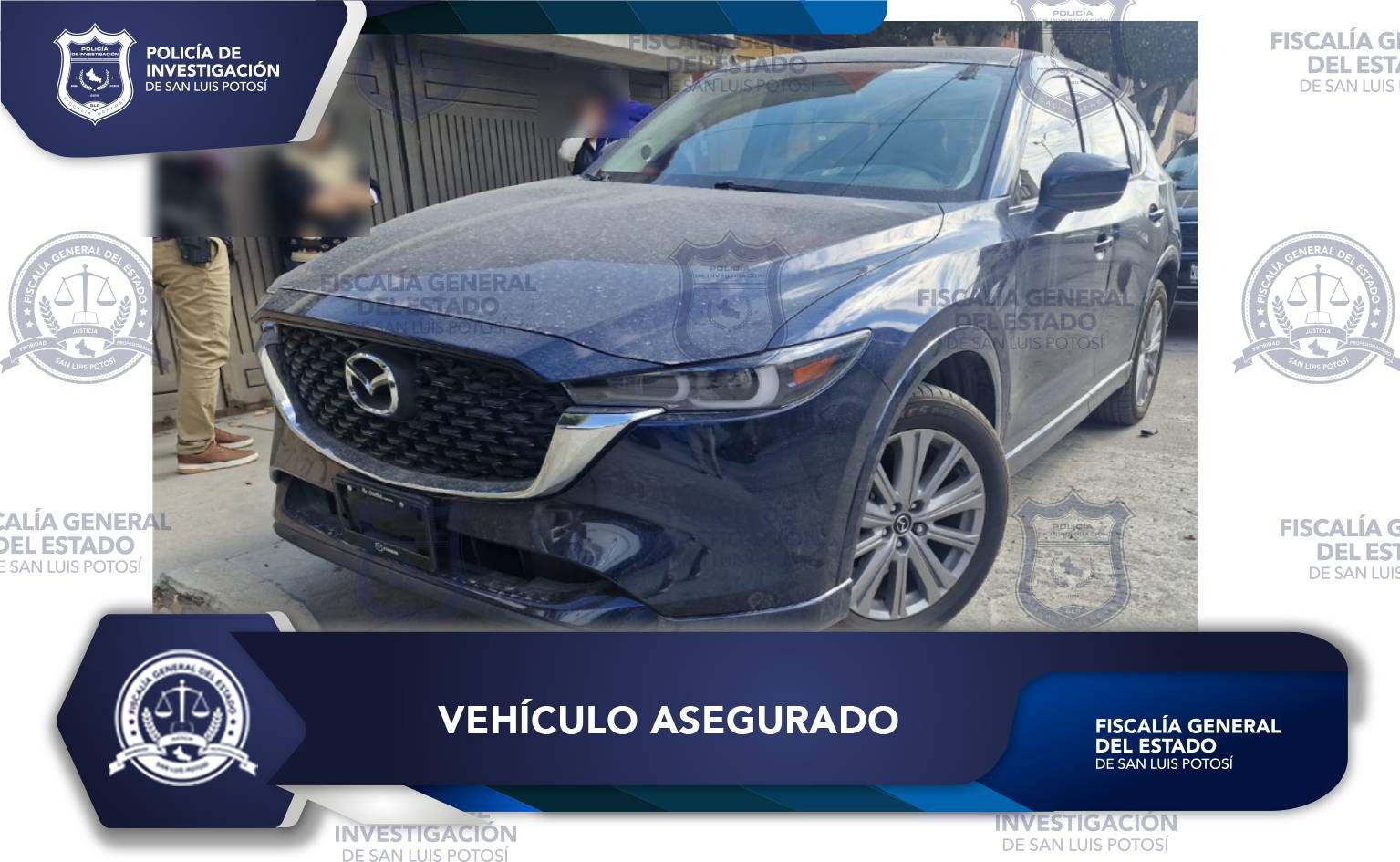 Los agentes investigadores detectaron en la colonia Jardín de la capital potosina un vehículo marca Mazda, modelo 2024, color azul y sin placas de circulación. Al realizar una inspección preventiva, se observaron alteraciones en su número de serie, por lo que se procedió a verificar su estatus legal.