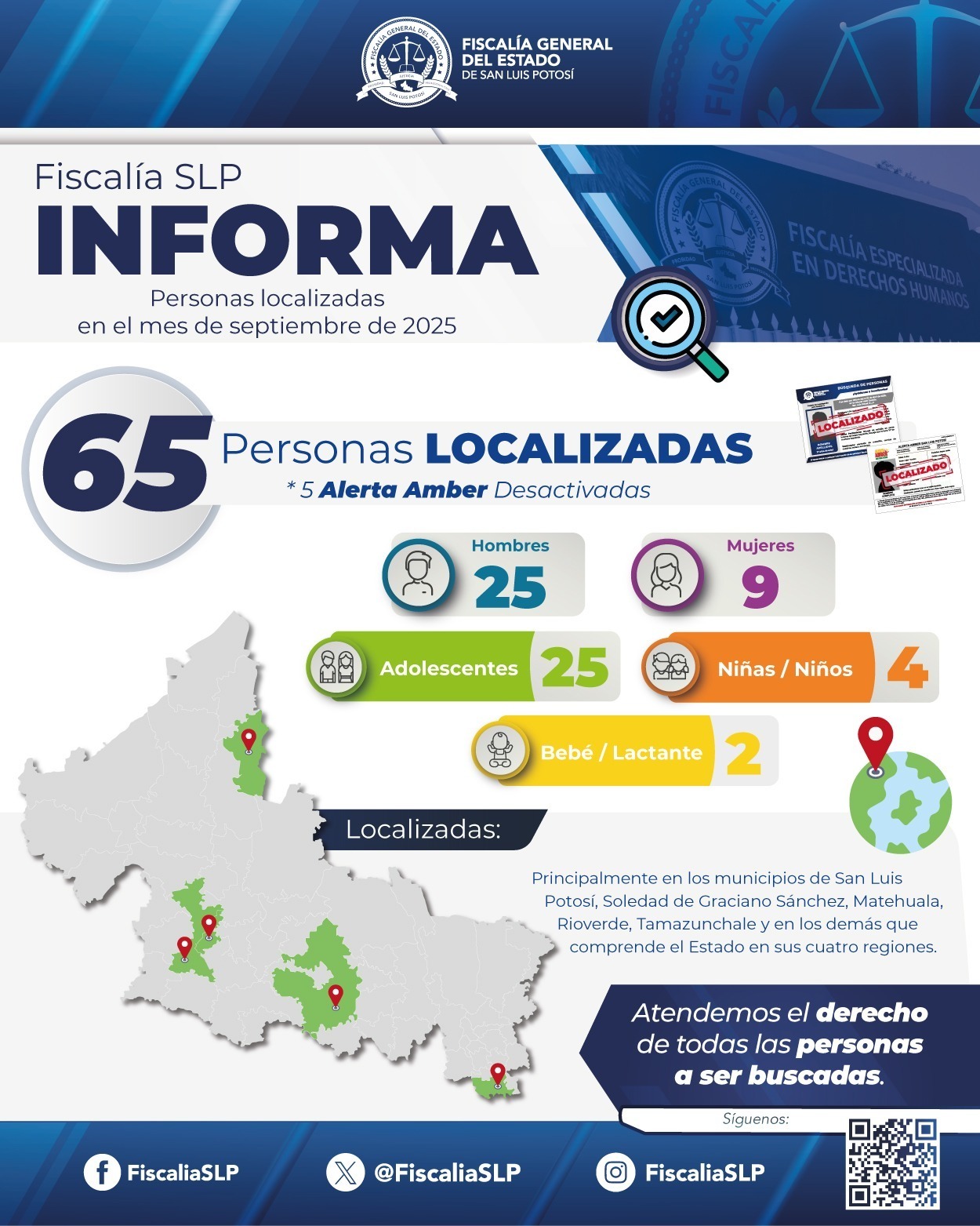 MEDIANTE ACCIONES DE BÚSQUEDA FGESLP LOCALIZA A 65 PERSONAS DURANTE SEPTIEMBRE 2025
