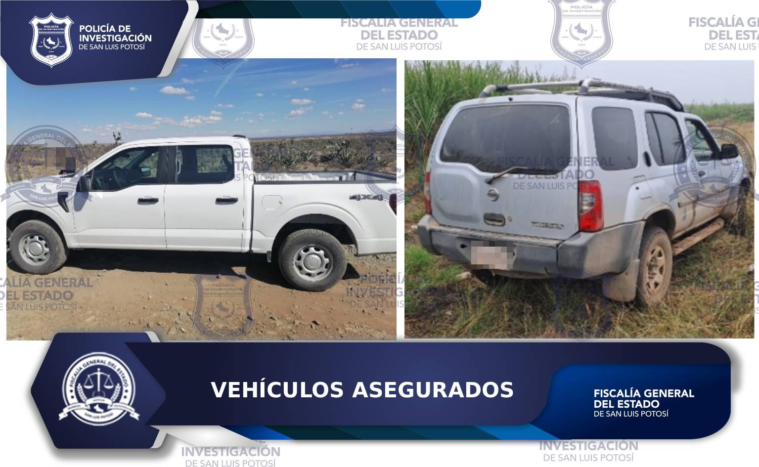 En distintas acciones operativas, elementos de la Policía de Investigación (PDI) de la Fiscalía General del Estado de San Luis Potosí (FGESLP) lograron el aseguramiento de dos vehículos por diversas irregularidades, en Salinas de Hidalgo y El Naranjo.
